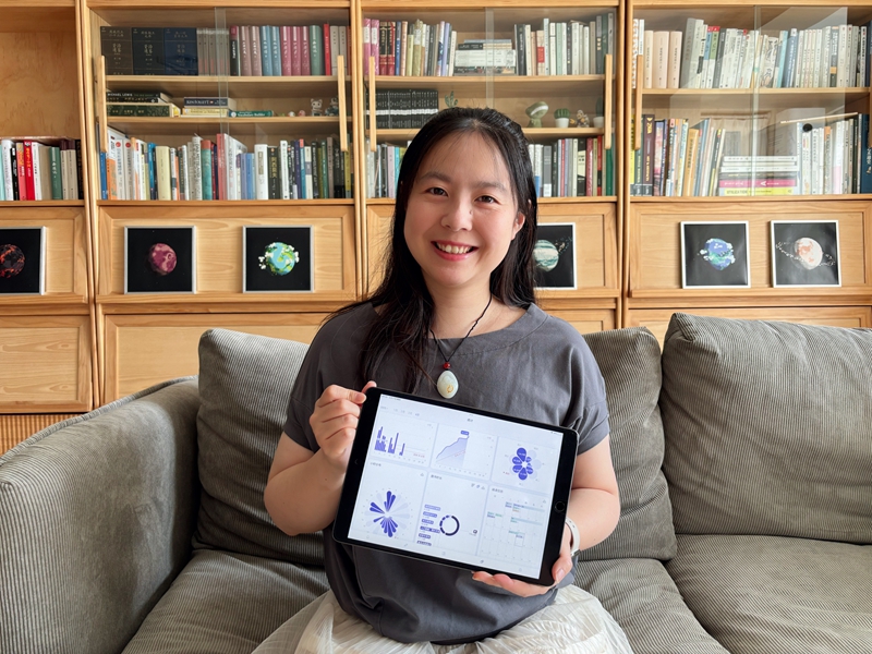 羨轍在家中展示她開發(fā)的APP。受訪者供圖