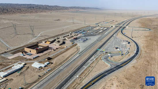 這是4月29日拍攝的敦煌懸泉置遺址景區(qū)。景區(qū)依托G3011柳格高速甜水井停車區(qū)而建,集高速服務、游客體驗、文化展陳、特色商業(yè)等功能于一體(無人機照片)。