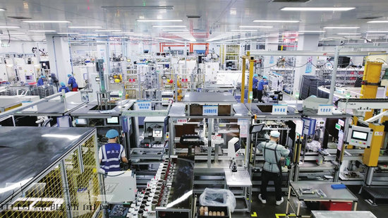 在富臨精工股份有限公司新能源汽車減速器加工、裝配產(chǎn)線上,工人有序作業(yè)。