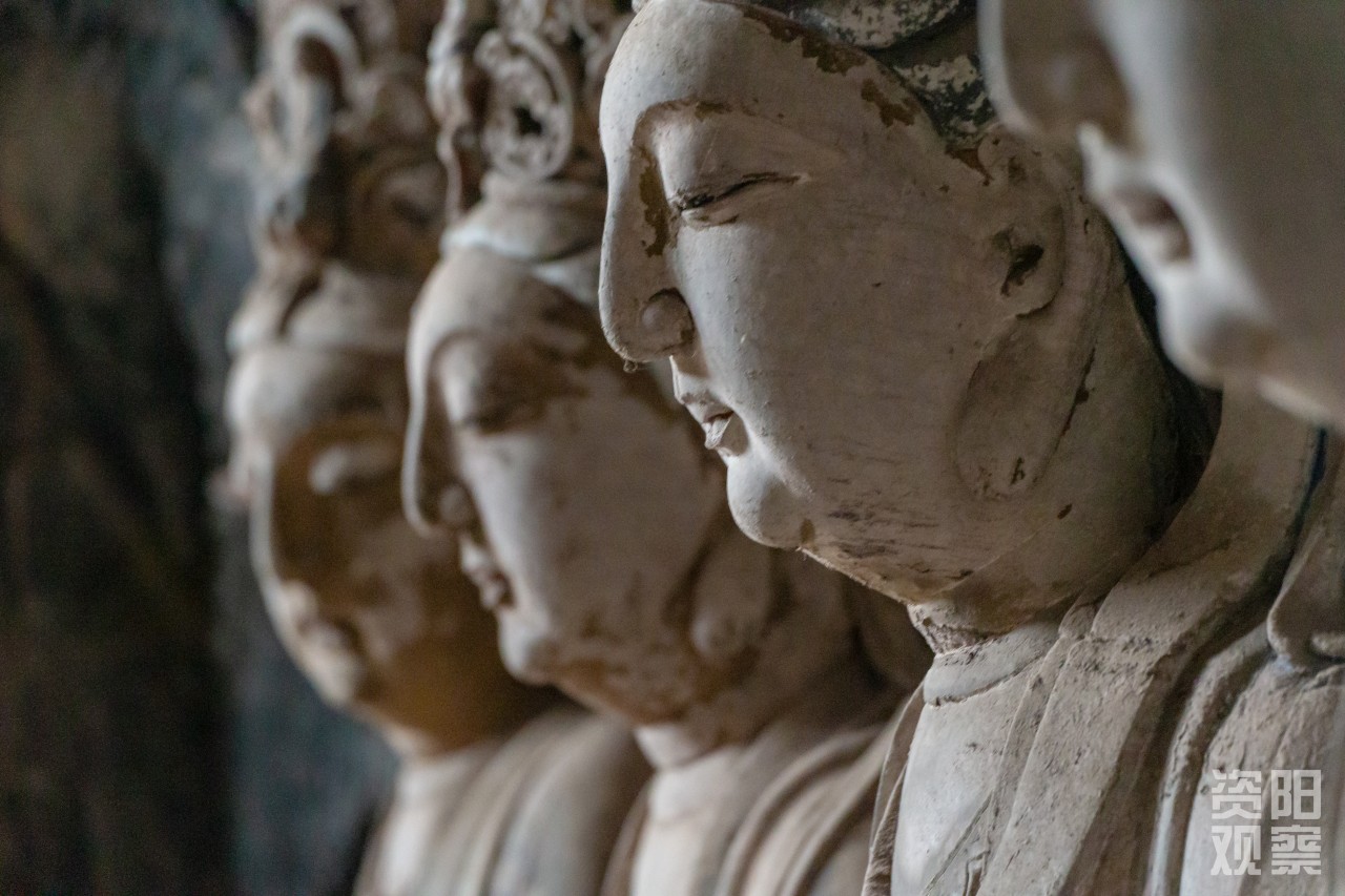 唐宋年間,北方石窟藝術(shù)南下“開分店”,古安岳人直接開啟“造像內(nèi)卷”模式:十里一庵、五里一廟,全縣200多處石窟、10萬尊造像星羅棋布,摩崖佛經(jīng)經(jīng)文多達(dá)40余萬字,石窟總數(shù)和摩崖造像數(shù)量穩(wěn)居全省第一、全國第二。