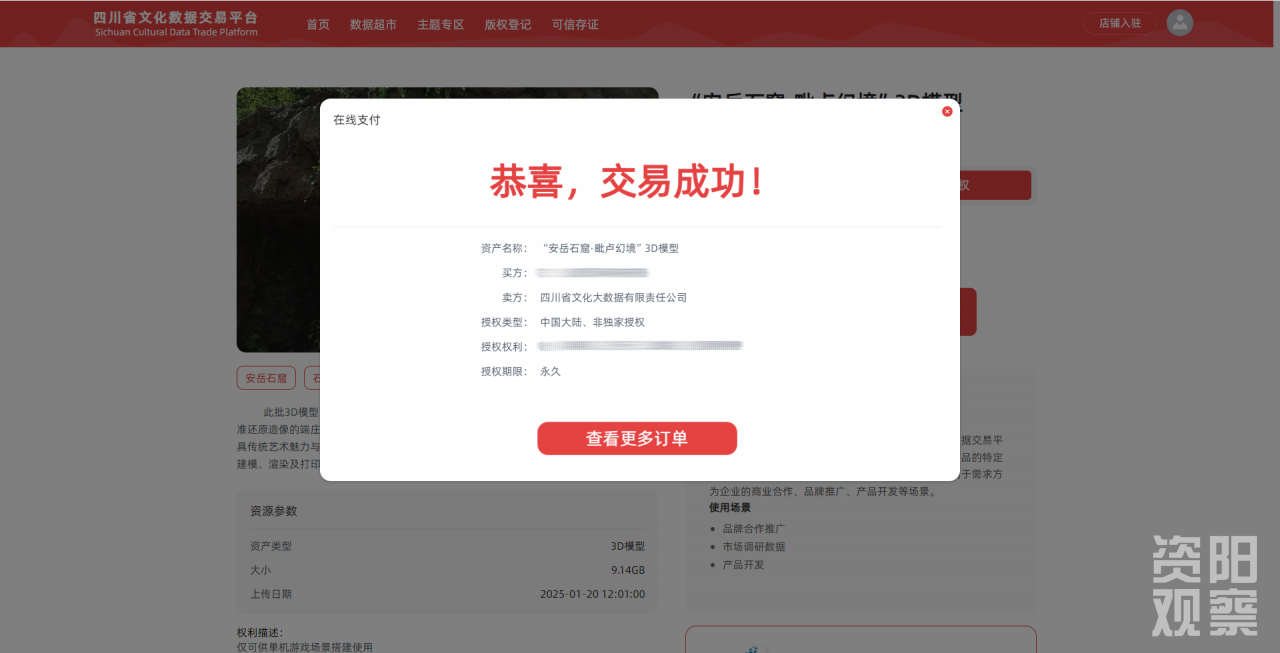 全省文化大數(shù)據(jù)體系內(nèi)第一筆文化數(shù)據(jù)資產(chǎn)交易成功。