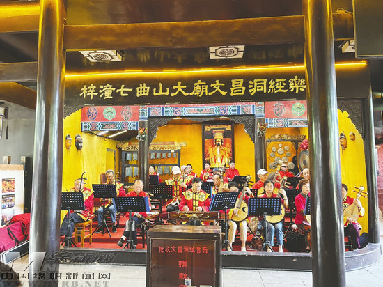 走進(jìn)七曲山風(fēng)景區(qū),悠揚(yáng)婉轉(zhuǎn)的文昌洞經(jīng)古樂旋律便響徹在七曲山大廟內(nèi)。文昌洞經(jīng)古樂又稱“洞經(jīng)音樂”,被聯(lián)合國教科文組織列為全人類寶貴文化遺產(chǎn),也是國家級非物質(zhì)文化遺產(chǎn)。