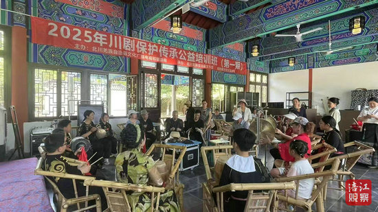如今,在各部門支持下,教學體系更趨完善:課程安排固定,每周六上午到下午三點開課,既重點培育青少年學員,又向社區(qū)群眾全面開放。12歲的蔣步偉學習川劇一年半,已能完整演繹經(jīng)典選段。“張老師要求嚴,但戲里的故事特別吸引人,越學越有滋味。”