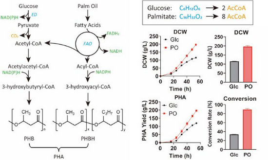 PHA合成的糖基碳源路線和油基碳源路線對比