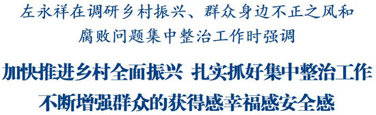 調(diào)研過程中,左永祥強(qiáng)調(diào),要學(xué)習(xí)運(yùn)用“千萬工程”經(jīng)驗(yàn),扎實(shí)做好全市“三農(nóng)”各項(xiàng)工作,持續(xù)鞏固拓展脫貧攻堅(jiān)成果,推進(jìn)鄉(xiāng)村全面振興取得新成效。要深入實(shí)施新一輪糧食產(chǎn)能提升行動(dòng),積極發(fā)展現(xiàn)代種業(yè),務(wù)實(shí)抓好高標(biāo)準(zhǔn)農(nóng)田建設(shè),堅(jiān)守耕地保護(hù)紅線,加快建設(shè)新時(shí)代更高水平“天府糧倉(cāng)”綿陽(yáng)片區(qū)。要培育壯大鄉(xiāng)村產(chǎn)業(yè),加快發(fā)展農(nóng)業(yè)新質(zhì)生產(chǎn)力,統(tǒng)籌抓好農(nóng)業(yè)品種培優(yōu)、品質(zhì)提升、品牌打造,推進(jìn)現(xiàn)代農(nóng)業(yè)園區(qū)提質(zhì)擴(kuò)面,大力發(fā)展農(nóng)產(chǎn)品精深加工,推動(dòng)農(nóng)業(yè)“接二連三”融合發(fā)展,促進(jìn)鄉(xiāng)村產(chǎn)業(yè)全鏈條升級(jí)。要進(jìn)一步深化農(nóng)村改革,探索創(chuàng)新農(nóng)村閑置資產(chǎn)盤活利用模式,因地制宜發(fā)展壯大新型農(nóng)村集體經(jīng)濟(jì),建強(qiáng)農(nóng)村干部和人才隊(duì)伍,做實(shí)鄉(xiāng)村發(fā)展要素保障,不斷增強(qiáng)鄉(xiāng)村振興活力。要著力提升鄉(xiāng)村建設(shè)和治理水平,統(tǒng)籌抓好村容村貌提升、路域環(huán)境整治、基礎(chǔ)設(shè)施完善等工作,進(jìn)一步優(yōu)化鄉(xiāng)村公共服務(wù)供給,抓好鄉(xiāng)風(fēng)文明建設(shè),推進(jìn)平安鄉(xiāng)村建設(shè),讓群眾安居樂業(yè)。開展群眾身邊不正之風(fēng)和腐敗問題集中整治,是推動(dòng)全面從嚴(yán)治黨向基層延伸、增進(jìn)民生福祉的重要舉措,各級(jí)各部門要樹牢和踐行造福人民的政績(jī)觀,緊盯民生痛點(diǎn)難點(diǎn),結(jié)合開展深入貫徹中央八項(xiàng)規(guī)定精神學(xué)習(xí)教育,縱深推進(jìn)集中整治,以有力舉措推動(dòng)重點(diǎn)任務(wù)落到實(shí)處,更好為治理賦能、為發(fā)展助力。