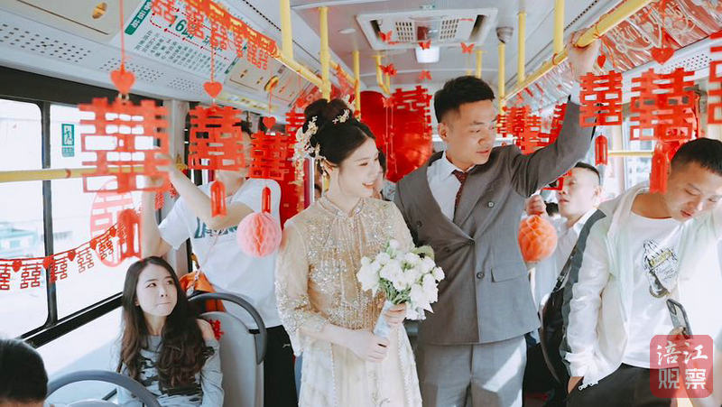 新娘諾媛說:“現(xiàn)在國家提倡綠色環(huán)保,‘公交婚禮’接親一趟的價(jià)格在600元左右,比較經(jīng)濟(jì)實(shí)惠,而且親友聚在一輛車?yán)?,氛圍超好?rdquo;