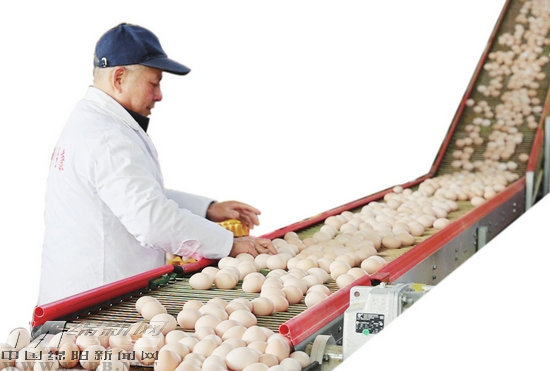 走進合作社,3棟標(biāo)準(zhǔn)且智能化的現(xiàn)代雞廠赫然入目,步入其中,一排排整齊的雞籠里,蛋雞正在覓食。新鮮產(chǎn)出的雞蛋順著傳送帶迅速滾動,經(jīng)過精準(zhǔn)地分揀進入雞蛋托盤。