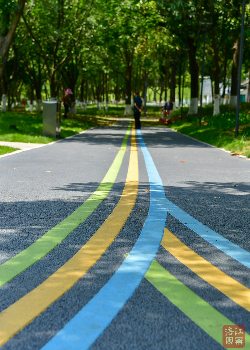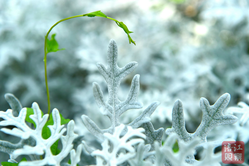 地面上綠樹成蔭,步道曲折蜿蜒。道路兩旁,鐵樹的新葉宛如綠色的音符,銀葉菊的葉片如同霜染,為這個季節(jié)增添了一抹獨特的色彩。