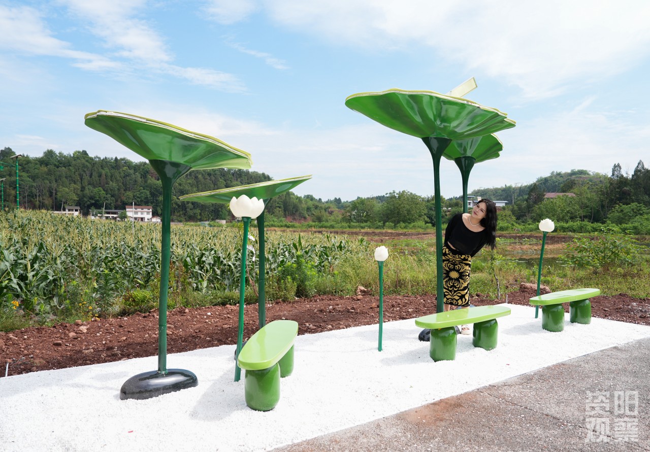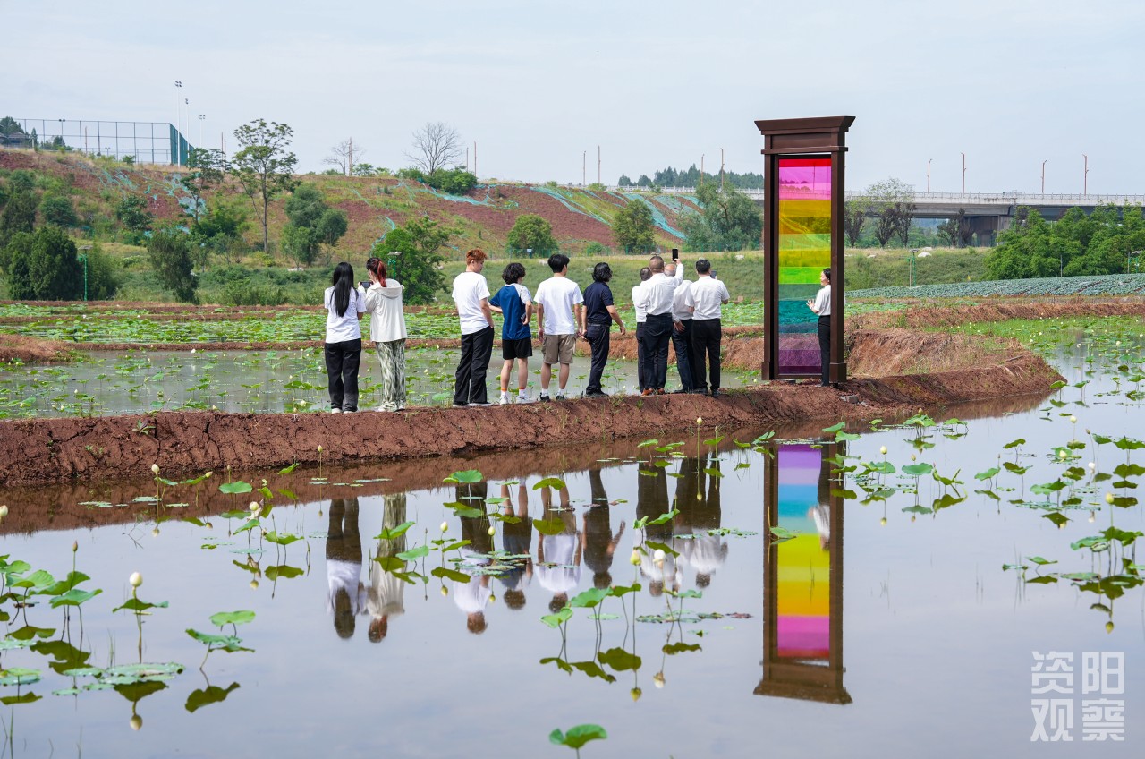 四川電影電視學(xué)院設(shè)計與美術(shù)學(xué)院公共藝術(shù)專業(yè)大三學(xué)生董怡跟隨老師來到紅碑社區(qū)參觀,對于第一次到農(nóng)田參觀展覽的她來說,這是一次奇妙的體驗。“以前公共藝術(shù)多在美術(shù)館。當(dāng)藝術(shù)真正回歸大地,作品想傳達的內(nèi)涵才更直觀。”董怡表示,這種共創(chuàng)模式不僅增強了作品的在地性,更讓村民成為藝術(shù)生產(chǎn)的主體,體現(xiàn)了藝術(shù)與鄉(xiāng)村的深度共生。