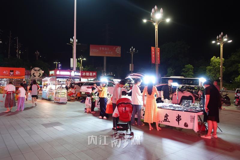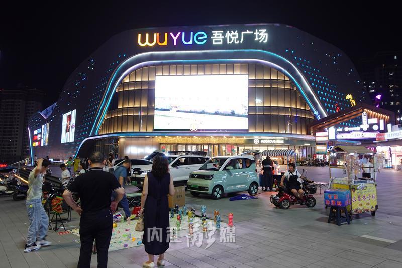 在吾悅廣場(chǎng)門(mén)前,幾輛新能源汽車打開(kāi)后備箱,變身成為臨時(shí)攤位,售賣手工串珠飾品;三元匯的大排檔里,服務(wù)員端著紅彤彤的龍蝦穿梭于餐桌之間;石羊大道上,騎行愛(ài)好者們?nèi)齼蓛山Y(jié)伴而行——這是2025年夏季,內(nèi)江城南新區(qū)夜晚的日常畫(huà)面。