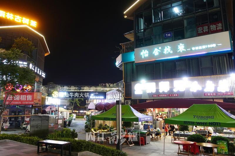 晚上十點(diǎn),三元匯的餐飲街依然燈火通明。