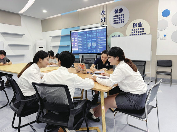 該校輔導(dǎo)員正在幫助學(xué)生修改求職簡歷