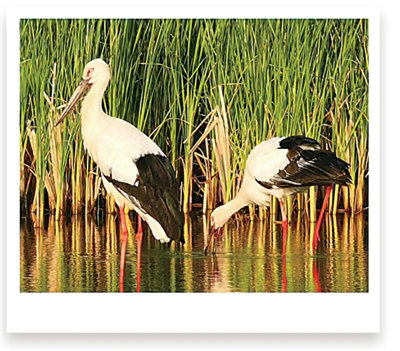 山東東營黃河口候鳥棲息地,東方白鸛在離巢穴不遠(yuǎn)的濕地里覓食。楊 斌攝