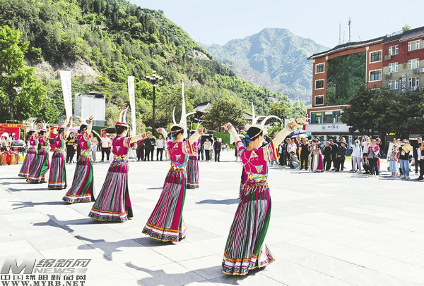 在文化集市里,平武本土?xí)?、文?chuàng)產(chǎn)品及非遺手作等特色產(chǎn)品琳瑯滿目,“報(bào)恩情韻”民俗文化表演中,白馬歌舞、羌族歌舞等極具特色的民俗節(jié)目讓游客流連忘返。夜幕降臨,西城門廣場的鍋莊舞更是將歡樂的氛圍推向高潮,游客與本地市民手拉手共舞,在歡快節(jié)奏中感受民族文化魅力。這種“文物保護(hù)+文化體驗(yàn)+消費(fèi)場景”的融合發(fā)展模式,正是平武推進(jìn)文化遺產(chǎn)保護(hù)和文博旅游發(fā)展的生動(dòng)實(shí)踐。