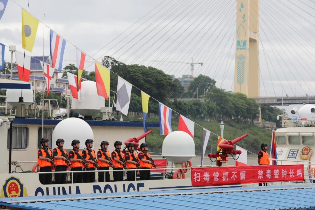 此次行動正值“6·26”國際禁毒日。行動開始前,四國有關執(zhí)法部門齊聚中老緬泰湄公河聯(lián)合巡邏執(zhí)法四國指揮部召開指揮官聯(lián)席會,共同研定行動計劃及啟動系列禁毒主題宣傳活動,并在中方53107艇設立編隊指揮所指揮行動。行動中,參與行動的各方執(zhí)法艇懸掛多語種禁毒宣傳標語,廣泛發(fā)動流域百姓共同參與到打擊流域涉毒涉詐違法犯罪行動中來。四方還共同派員組成了聯(lián)合禁毒宣傳小分隊,深入瀾湄流域沿岸村寨、學校、企業(yè)開展形式多樣、內(nèi)容豐富的系列禁毒宣傳活動。
