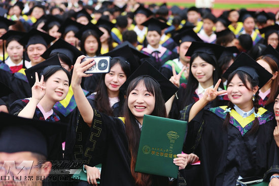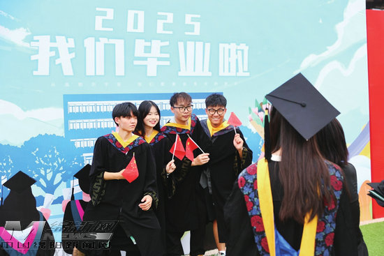 畢業(yè)典禮現(xiàn)場,畢業(yè)生合影留念。