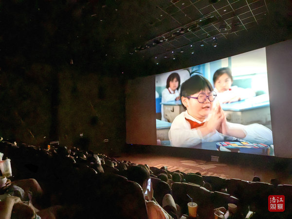 當(dāng)天下午,在簡短的啟動儀式后,《別把作文當(dāng)回事》在綿陽中環(huán)電影城高新區(qū)悅影匯店和國內(nèi)200余家影院同步與觀眾見面。這部影片講的是一所普通小學(xué)校里,老師和學(xué)生在高壓環(huán)境中每天都在上演內(nèi)卷、抵抗的故事,特別是作文課尤其讓人頭疼。頑皮的學(xué)渣馬小花以出其不意的方式打破了怪圈。老師學(xué)會了如何教作文,孩子們自然也就會寫作文了。電影放映過程中,熟悉的場景、現(xiàn)實(shí)中真實(shí)存在的喜劇色彩,讓現(xiàn)場笑聲不斷。