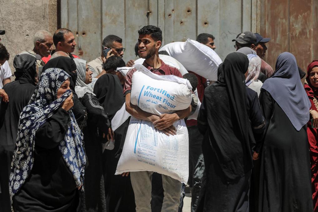 6月26日,巴勒斯坦人在加沙城領(lǐng)取援助物資。新華社發(fā)(里澤克·阿卜杜勒賈瓦德攝)