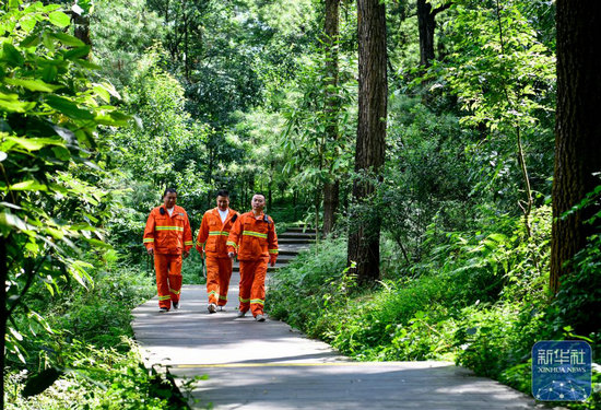 ↑7月1日,護(hù)林員在貴陽市長(zhǎng)坡嶺國(guó)有林場(chǎng)巡護(hù)山林。