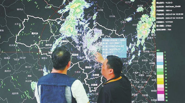 7月4日,北川防汛抗旱指揮部指揮大屏上實時顯示來自“相控陣”的數(shù)據(jù)。