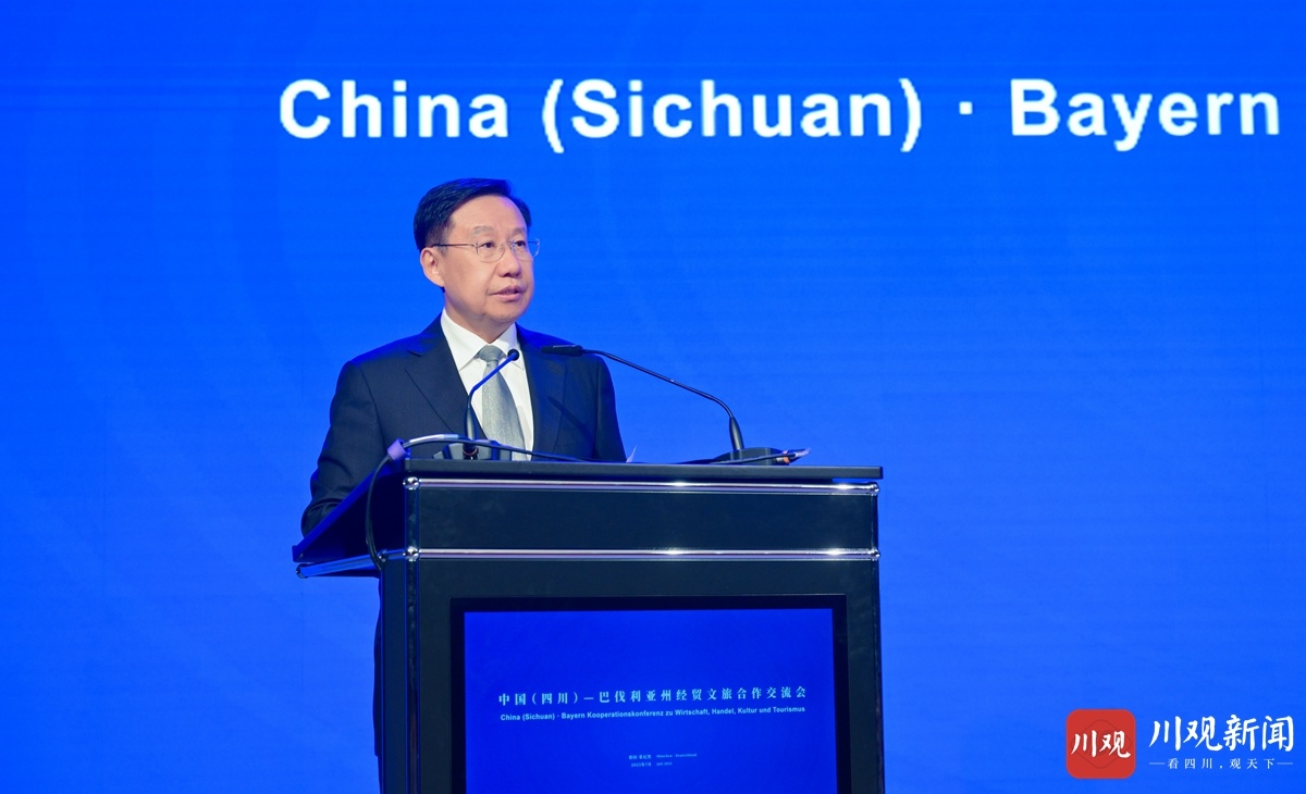 7月4日,省委書記、省人大常委會主任王曉暉在中國(四川)—巴伐利亞州經貿文旅合作交流會上致辭。