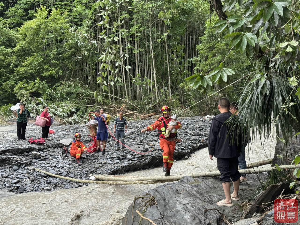 通道穩(wěn)固后,救援隊(duì)員迅速組織受困村民有序轉(zhuǎn)移。高燒嬰兒被救援隊(duì)員優(yōu)先護(hù)送過橋,并第一時間交由現(xiàn)場待命的醫(yī)護(hù)人員進(jìn)行檢查和初步處置。