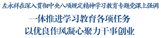 左永祥指出,黨的十八大以來,以習(xí)近平同志為核心的黨中央,直面黨面臨的重大風(fēng)險考驗和黨內(nèi)存在的突出問題,從制定和落實中央八項規(guī)定開局破題,從改進工作作風(fēng)、密切聯(lián)系群眾入手,推動黨風(fēng)政風(fēng)煥然一新,社風(fēng)民風(fēng)持續(xù)向好。在這個過程中,習(xí)近平總書記圍繞新形勢下作風(fēng)建設(shè)抓什么、怎么抓等重大理論和實踐問題,發(fā)表了一系列重要講話、作出了一系列重要指示批示,形成了習(xí)近平總書記關(guān)于加強黨的作風(fēng)建設(shè)的重要論述,對于解決大黨獨有難題、馳而不息糾治作風(fēng)頑疾具有重大意義。我們要自覺站在深刻領(lǐng)悟“兩個確立”的決定性意義、堅決做到“兩個維護”的政治高度,學(xué)深悟透習(xí)近平總書記關(guān)于加強黨的作風(fēng)建設(shè)的重要論述,準確把握其精神實質(zhì)和核心要義,堅定用以指導(dǎo)作風(fēng)建設(shè)實踐。