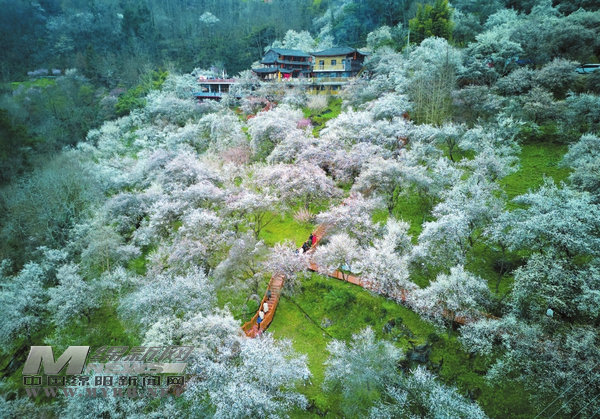 據(jù)史料記載,從明代開始,這里的“梅文化”便已生根發(fā)芽,延續(xù)了600余年。景區(qū)內(nèi),百年以上的古梅多達上千畝,100余萬株不同品種的果梅爭奇斗艷。每年2月初至3月底,是印象梅林最美的時節(jié)。萬畝梅花競相綻放,漫山遍野一片雪白,微風拂過,花瓣如雪花般飄落,形成“萬畝梅園,十里花海”的壯觀景致,也難怪它會被譽為“綿陽十大賞花地”之一。