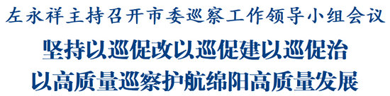 綿陽新聞網(wǎng)訊 7月10日,市委巡察工作領(lǐng)導(dǎo)小組第九次會(huì)議召開,省委常委、副省長、市委書記左永祥主持會(huì)議并講話。他強(qiáng)調(diào),要深入學(xué)習(xí)貫徹習(xí)近平總書記關(guān)于巡視工作重要論述,全面落實(shí)黨中央決策部署和省委工作要求,堅(jiān)持以巡促改、以巡促建、以巡促治,抓好問題整改,強(qiáng)化成果運(yùn)用,推動(dòng)巡察工作向縱深發(fā)展,以高質(zhì)量巡察護(hù)航綿陽高質(zhì)量發(fā)展。