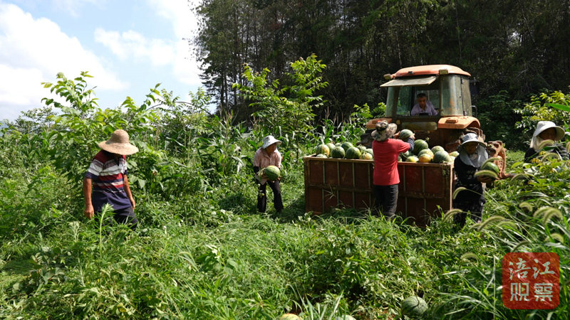 走進(jìn)基地,一個(gè)個(gè)圓滾滾的西瓜掩映在核桃樹(shù)下。當(dāng)?shù)卮迕穹止っ鞔_,采摘、搬運(yùn),再將西瓜穩(wěn)穩(wěn)碼放上發(fā)往云南的貨車(chē)。