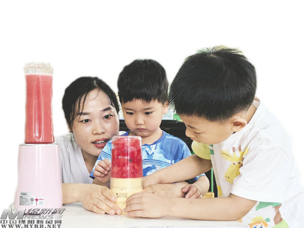在安州暑期托管班,廚房小能手上線。小朋友們圍在操作臺(tái)榨西瓜汁、拌冰粉,小手忙不停。“雙職工終于不用焦慮啦!”家長(zhǎng)廖海婷的話,道出100個(gè)家庭的心聲。