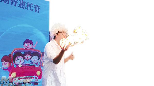 7月7日,在涪城區(qū)2025年“涪工娃快樂(lè)營(yíng)”暑期托管班上,一場(chǎng)沉浸式科技秀成為孩子們的“第一課”——身著銀色服裝的工作人員將透明液體混合,瞬間噴涌的白色煙霧如云朵籠罩舞臺(tái),引得全場(chǎng)孩童驚呼、拍手。