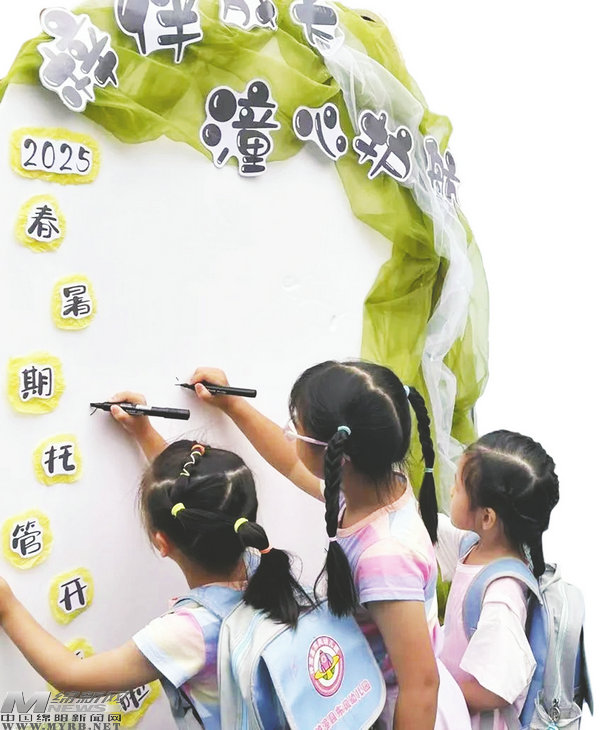 經(jīng)開(kāi)區(qū)暑托班開(kāi)在企業(yè)門(mén)口,讓新就業(yè)勞動(dòng)者帶娃上班兩不誤。老師帶娃從生活場(chǎng)景中學(xué)寫(xiě)作,讓日常觀察化為生動(dòng)文字。還有科學(xué)實(shí)驗(yàn)冒泡泡、書(shū)法課揮毫潑墨,羅沐鑫小朋友說(shuō):“連續(xù)3年都想來(lái)!”