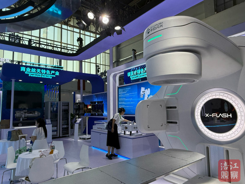人形機(jī)器人、X-FLASH放療系統(tǒng)、涪城一號(hào)SAR遙感衛(wèi)星模型等前沿科技產(chǎn)品,讓展館成為一個(gè)巨大的沉浸式體驗(yàn)空間。