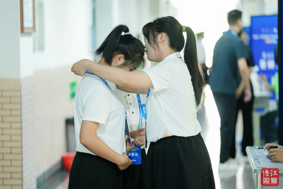 上午9時,青春的活力與創(chuàng)新的激情在校園里涌動。一間間答辯室內(nèi),參賽選手們狀態(tài)各異:有的腳步輕快、神采奕奕地步入賽場;有的在場外合影留念,以緩解緊張情緒;還有的正抓緊最后時間演練答辯演講稿。