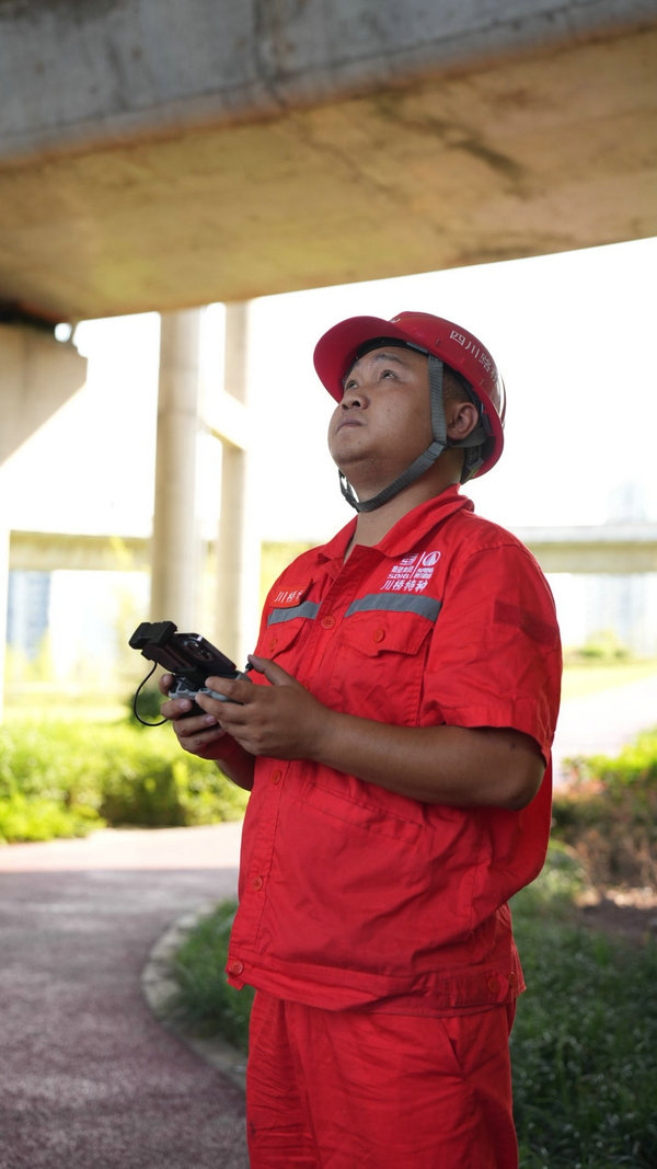 不僅供電行業(yè),還有許多行業(yè)在高溫下堅(jiān)守工作。7月17日,在宜賓鹽坪壩大橋,四川路橋橋梁工程有限責(zé)任公司特種工程分公司的工作人員在高溫下檢查大橋伸縮縫的安全情況,借助無人機(jī),巡護(hù)時(shí)間大大縮短。