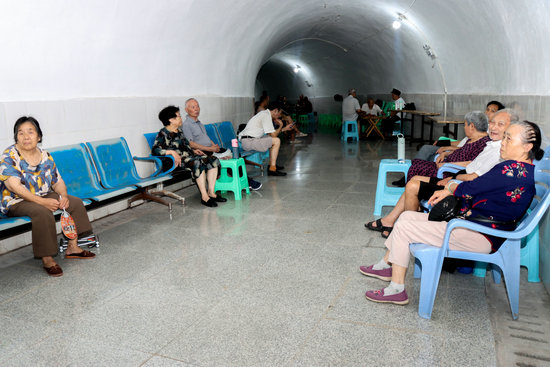 7月17日,達(dá)州市民在人防工程納涼。達(dá)州觀察 徐洋 攝