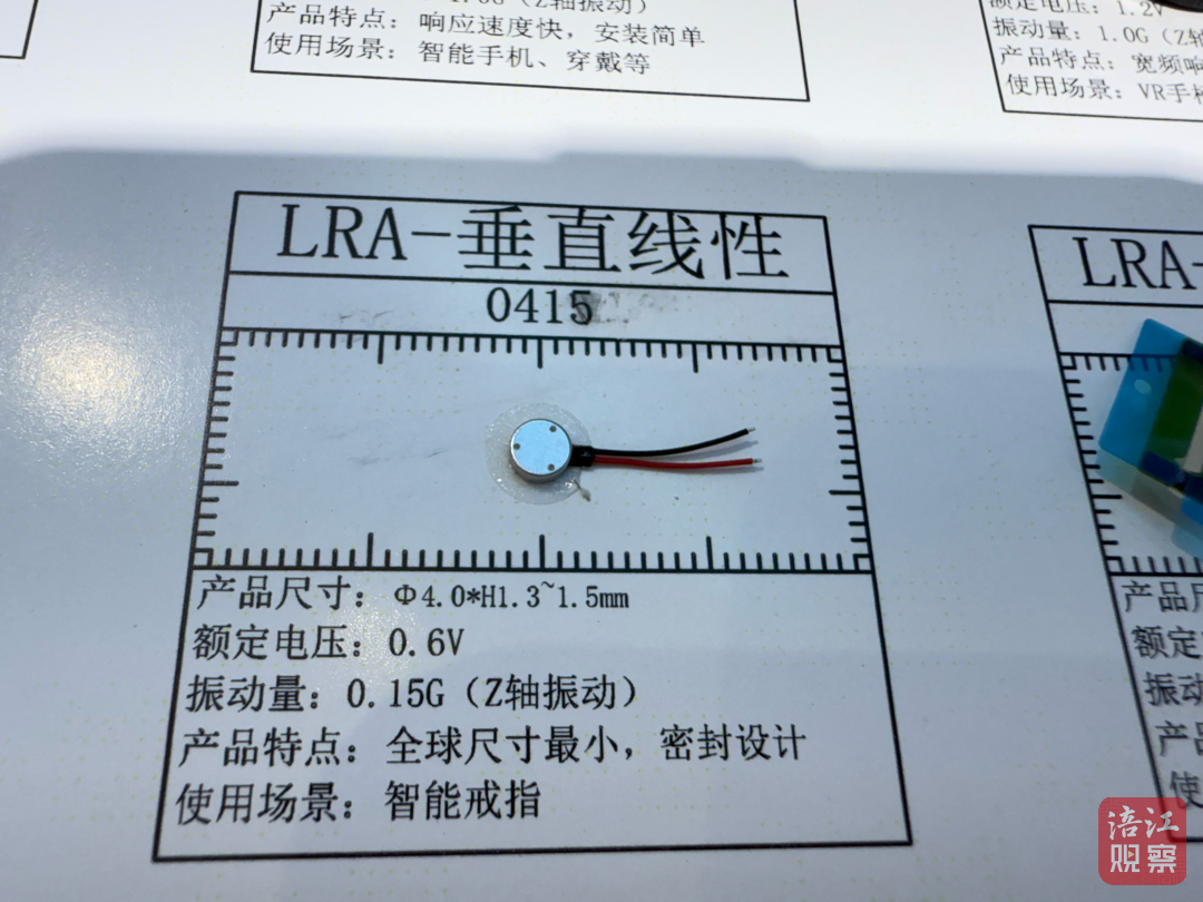 在展區(qū)陳列出的微型振動電機(jī)前,記者看見了各式各樣的微型振動電機(jī)。據(jù)了解,這類電機(jī)主要是為用戶帶來觸覺反饋體驗(yàn),以增強(qiáng)用戶和電子產(chǎn)品的交互感,在智能手機(jī)、智能穿戴、VR等消費(fèi)電子產(chǎn)品都會使用到。