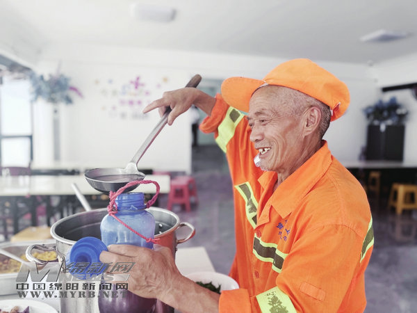 環(huán)衛(wèi)工人在驛站內(nèi)盛綠豆湯