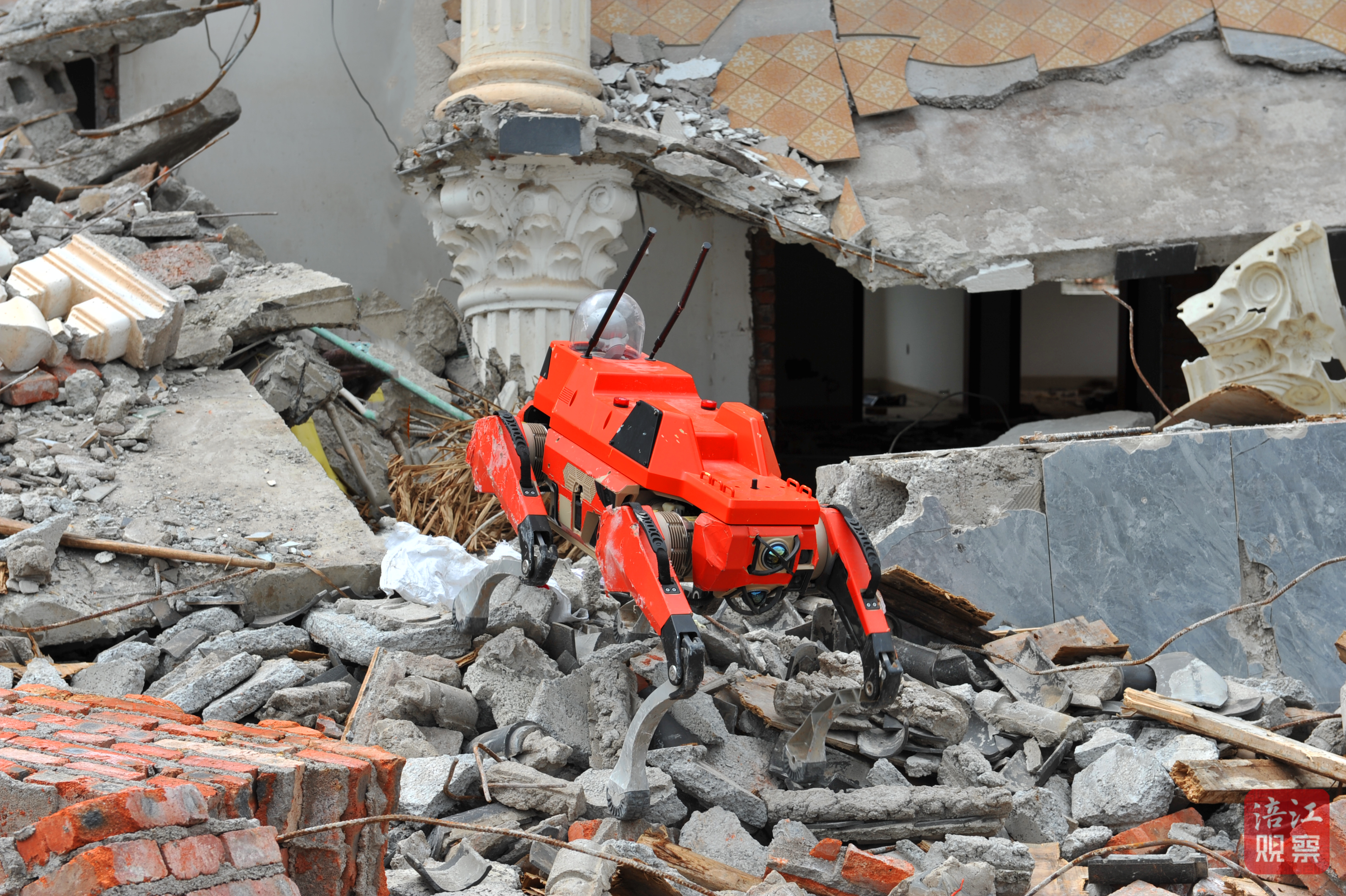 在現(xiàn)場(chǎng),這只顏色鮮艷、形似機(jī)械獵犬的小家伙在工作人員的操作下,靈活穿梭于復(fù)雜地形,無(wú)需等待開辟安全通道或加固墻體,便能敏捷攀爬瓦礫堆,靈活穿越鋼筋障礙,迅速進(jìn)入受損建筑內(nèi)部。