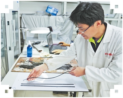 簡牘發(fā)掘、保護和修復(fù)是一場與時間的賽跑。“剛出土的竹簡軟得像面條,非常脆弱,接觸空氣后極易氧化變黑,可能導(dǎo)致文字瞬間消失。”蔣魯敬說,在龍會河楚墓發(fā)掘中,他們采用“整體提取法”:以薄塑料板作“手術(shù)刀”,木托板為“擔(dān)架”,將整堆簡牘托起,并快速送往荊州文物保護中心。