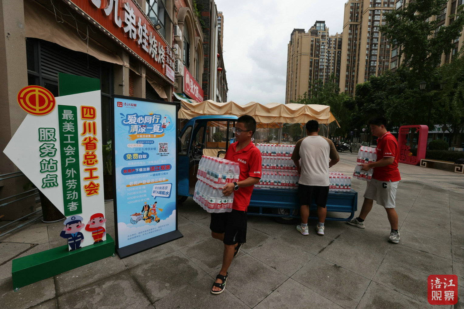 綿陽(yáng)市總工會(huì)宣教部副部長(zhǎng)李青說(shuō)出了活動(dòng)目的:“我們?cè)谌懈骺h(市、區(qū))選擇了部分工會(huì)驛站作為免費(fèi)取水點(diǎn),覆蓋戶外勞動(dòng)者密集區(qū)域,就是要織密一張‘清涼補(bǔ)給網(wǎng)’,確保戶外勞動(dòng)者們清涼度夏、平安度夏。”