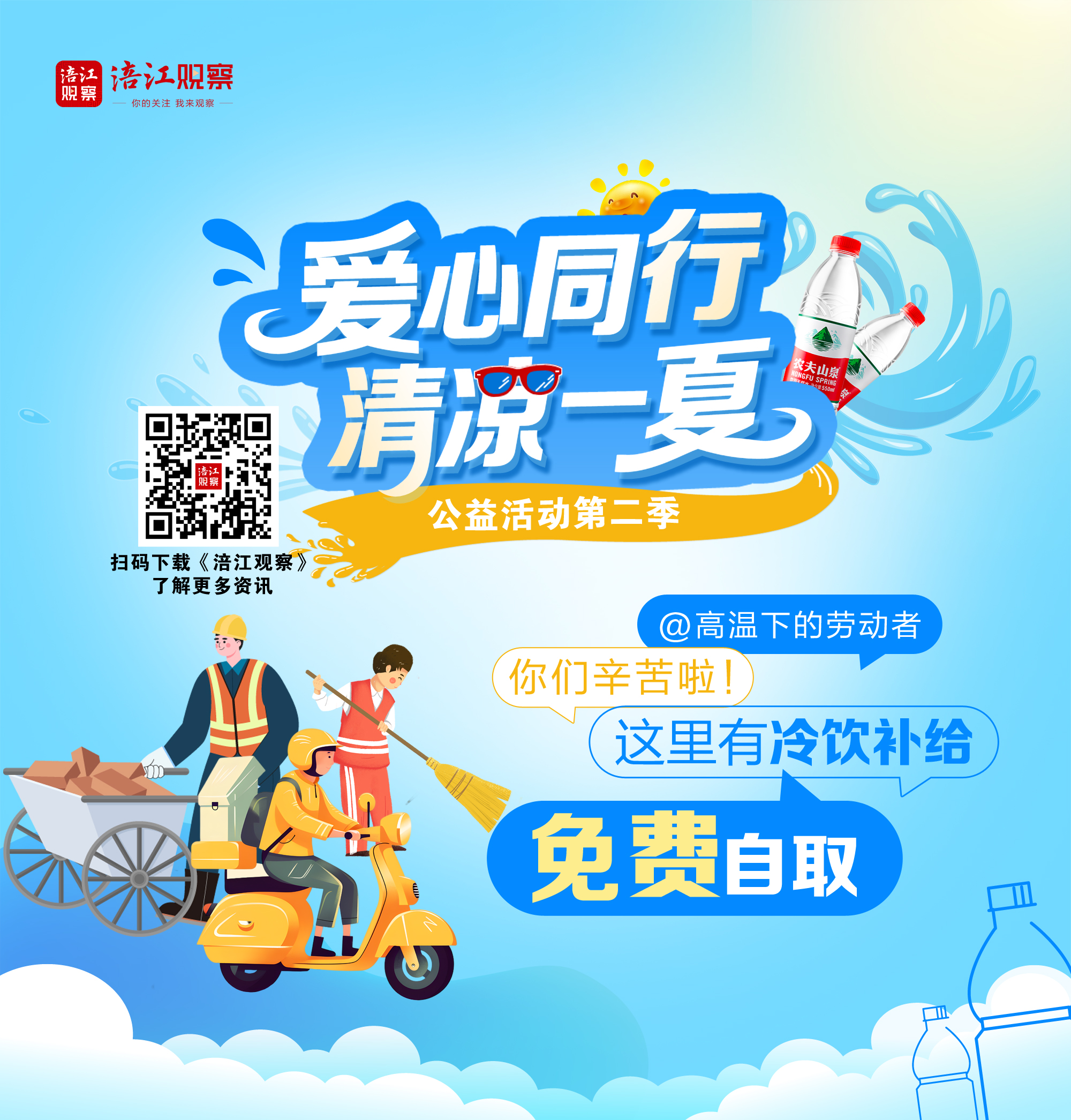 一瓶瓶止渴解暑的礦泉水,為高溫下的“城市超人”帶來(lái)盛夏里的專屬清涼。