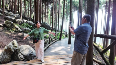 “第一次見到這樣的景色,太震撼了。”游客李英一邊用手機拍著林海與奇石交織的畫面,一邊忍不住贊嘆,“這適宜的溫度,就像呆在‘天然空調房’,感覺渾身的毛孔都在呼吸新鮮的空氣。”