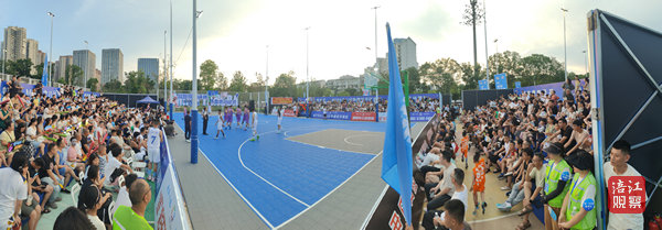 夏日的炎熱阻擋不了群眾的熱情。18時(shí),距比賽還有1個(gè)半小時(shí),觀眾們陸續(xù)排隊(duì)進(jìn)場(chǎng),敲打充氣棍、揮舞旗幟,將賽前緊張氛圍“拉滿”。19時(shí)30分,隨著裁判的哨子聲響,籃球場(chǎng)上的戰(zhàn)火一觸即燃,“經(jīng)”彩無(wú)限隊(duì)率先進(jìn)入狀態(tài),打出6比0的開(kāi)局。隨后,“經(jīng)”彩無(wú)限隊(duì)?wèi){借籃板優(yōu)勢(shì)繼續(xù)擴(kuò)大比分,以33比11領(lǐng)先進(jìn)入第二節(jié)。