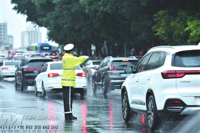 交警在擁堵路段指揮車輛通行