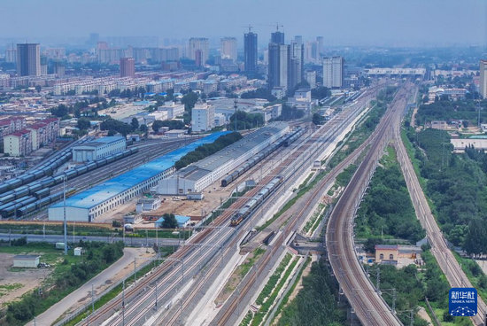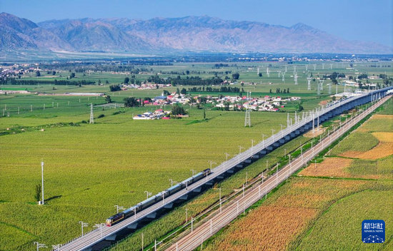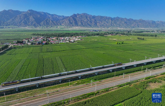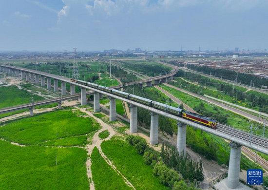 8月2日,檢測列車駛出包頭站(無人機照片)。新華社發(fā)