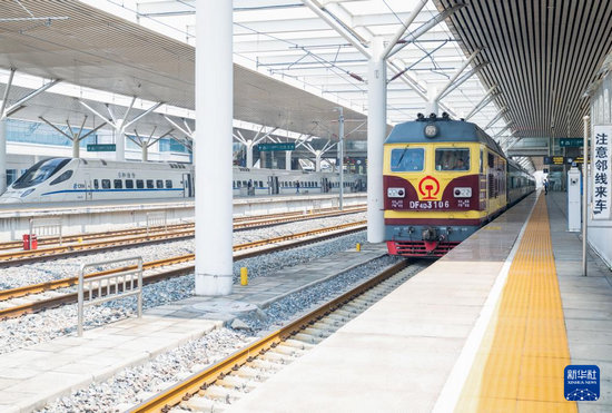 8月2日,檢測列車駛出包頭站。新華社發(fā)