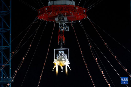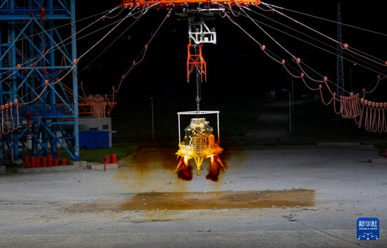 攬月月面著陸器在地外天體著陸試驗場進(jìn)行測試(資料照片)。新華社發(fā)(張斌 攝)