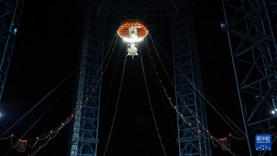 新華社河北懷來8月7日電(李國利、鄧孟)攬月月面著陸器著陸起飛綜合驗證試驗,6日在位于河北省懷來縣的地外天體著陸試驗場圓滿完成。
